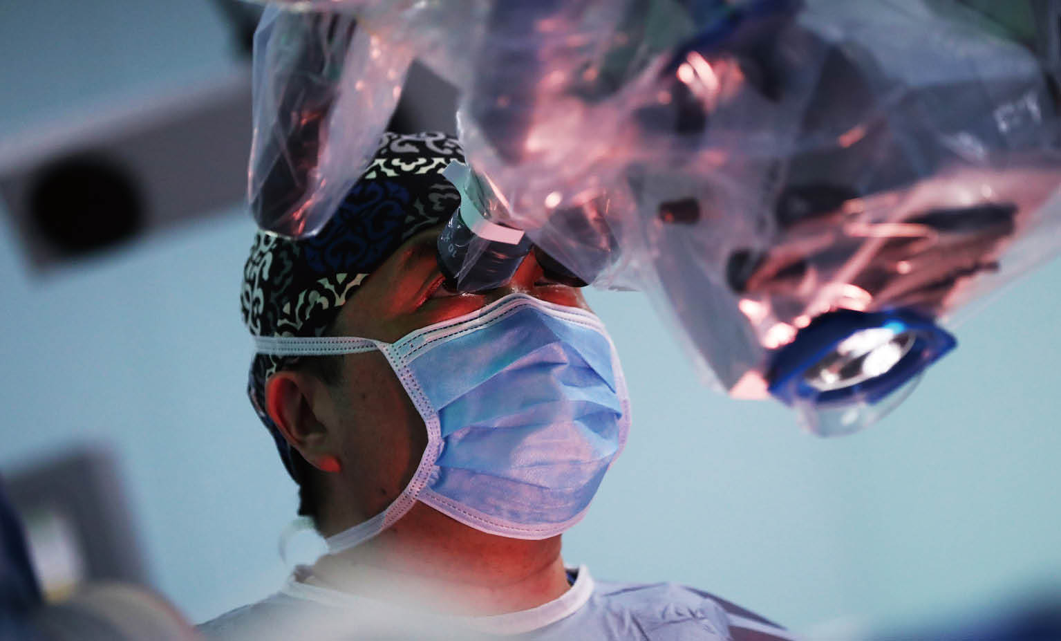 分子可視化手術(shù)導航系統(tǒng),使“不可見”的病理診斷數(shù)據(jù)真正“ 可見”,實現(xiàn)了針對神經(jīng)腫瘤分子級別的切除。圖為毛穎教授手術(shù)